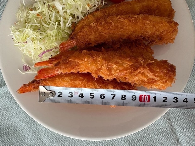 実際に揚げてみると、衣がはがれることもなくカリッと美味しく仕上がりました。大きさは尻尾を含めて全長12〜13cm程度。特大というわけではありませんが、夕飯のおかずとしては十分な大きさです。