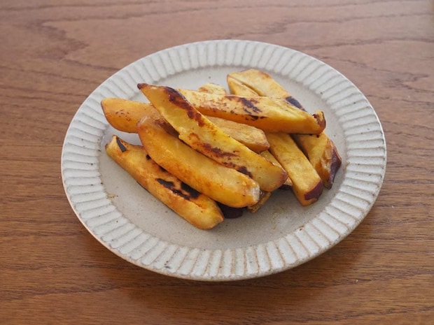パッケージには大学芋がおすすめされていますが、おかず作りにも重宝します。「さつまいものバターしょうゆ焼き」は、凍ったままフライパンに入れ弱火でじっくり焼き、バターとしょうゆで味付けするだけで完成。