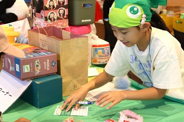 「創造ラボ」は、来場者が誰でも参加できる制作体験の場。ラボに用意された素材を自由に選んで、思い思いの作品を制作することができる。完成した作品は持ち帰ることができるほか、会場内に展示することも可能。来場者も表現を楽しめて、ラボで作られた作品が展示の一部になるという、まさに「みんなでつくる」を体現するエリアだ。