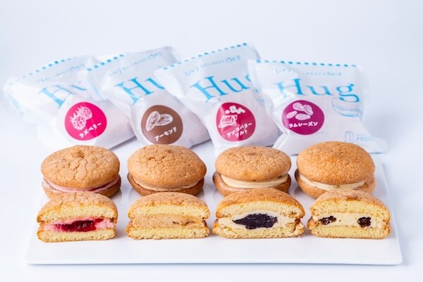 大切な人を抱きしめるような、どこか懐かしく優しいお菓子「Hug(ハグ)」4種は、各520円(税込)で販売される。ふんわりしっとり軽やかな生地で、北海道産バターを使ったクリームと素材をぎゅっと包んでいる。