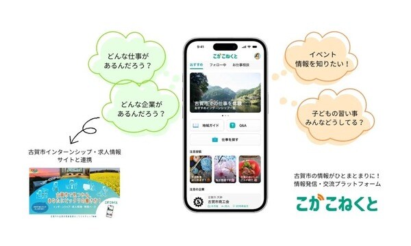 「こがこねくと」は、2025年2月3日に正式公開。古賀市が実施する進出企業定着・地域活性化支援委託事業の一環として企画・開発・運営されてきた。古賀市で暮らすこと、働くことの魅力を双方向で発信し合える、新しい情報発信・交流プラットフォームだ。