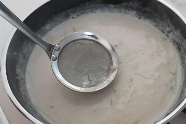 沸騰させると牛乳が分離してくるので、鍋肌が沸々するくらいの火加減をキープするのがポイントです。