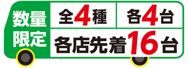 <全4種・各4台/各店先着16台>