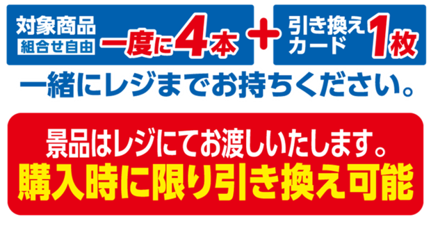 概要:対象の飲料を一度に4本(組合せ自由)買うと、アサヒ飲料セブン-イレブンオリジナルキャンペーントミカを1台プレゼント!