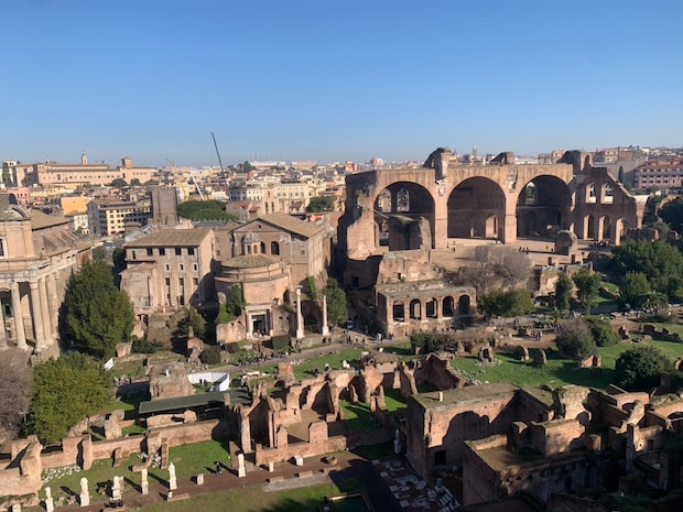 観光客も多くはなく、小高い丘から見下ろすフォロ・ロマーノヤ現在のローマ市街の景色に、悠久の時の流れを感じます。