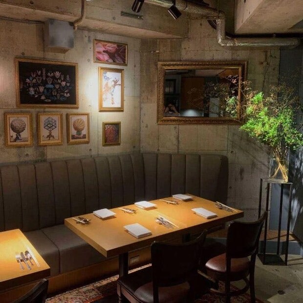 「時の過ぎゆくままに」は、渋谷駅から徒歩3分の金王八幡神社近くに佇むアンティーク調の隠れ家レストラン。絨毯やガラスの間仕切りが配されたシックな店内は、昼間でも落ち着いた雰囲気に包まれています。月替わりの創作料理は器使いも美しく、少しずつ多彩な味を楽しめる構成。スパークリングワインを含むドリンクが時間無制限で楽しめるのも魅力で、会話とともにゆったり味わえるのが嬉しい。時間を気にせず静かに語り合いたい大人の昼飲みにおすすめ。