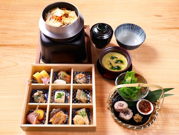 山菜の和え物や筍の炊き物、季節の焼物など、少しずつ様々な味覚を味わうことができ、目でも舌でも春を感じられる。上品でやさしい味付けが、素材本来の風味を引き立てており、友人との食事や家族での利用にもおすすめの春限定御膳となっている。