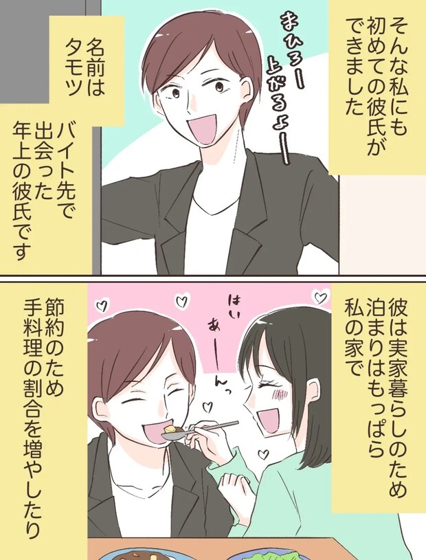 そんな私にも、バイト先で出会った初めての彼氏ができました。彼タモツは実家暮らしなので、泊りはもっぱら私の家。節約のために手料理の割合を増やしました。