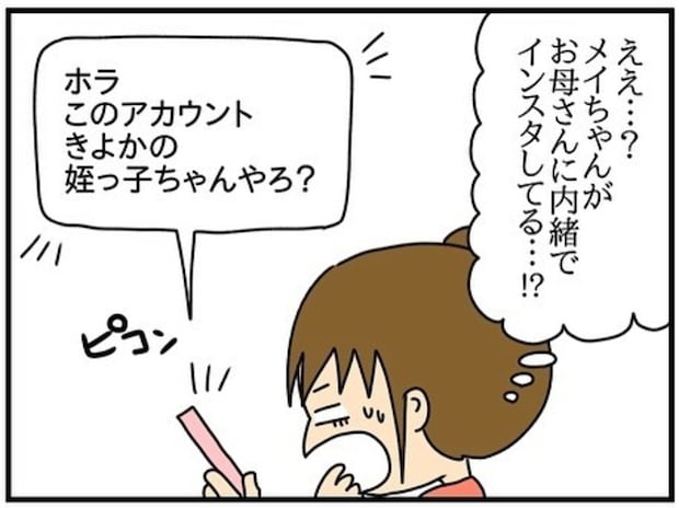 お母さんに内緒でメイちゃんがインスタグラムを使っているのでしょうか?きよかさんはチコちゃんから送られてきたアカウントを確認してみます。
