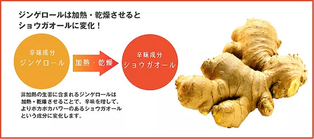 特に注目したいのが、摂るサウナ「ショウガオール」の働きです。生姜に含まれる辛味成分「ジンゲロール」は、加熱されることで「ショウガオール」に変化します。ショウガオールには体の深部体温を高め、内側から温める作用があるため、私はこれを『摂るサウナ』と呼んでいます。サウナ後の体を冷やさず、温かさを持続させるサポートが期待できます。さらに、深部体温が上がることで免疫機能のサポートや、腸の動きを促すことによる便通改善なども期待できるでしょう。