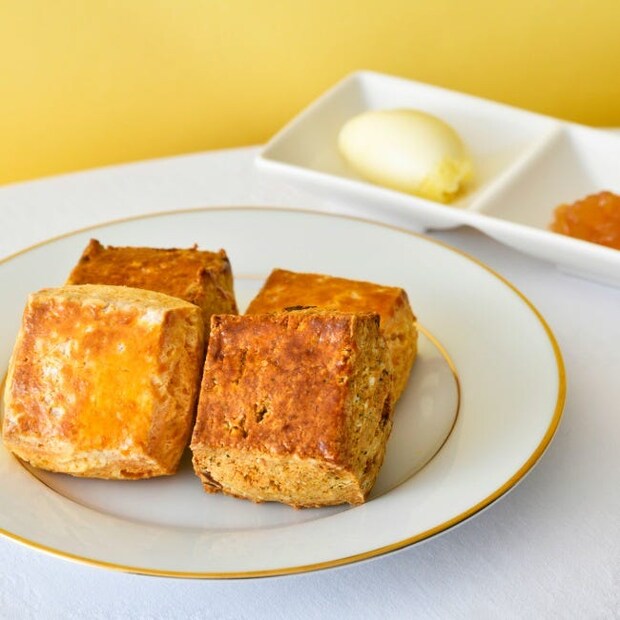 アールグレイと桃が香るスコーンには、贅沢なクロテッドクリームやジャムを添えて