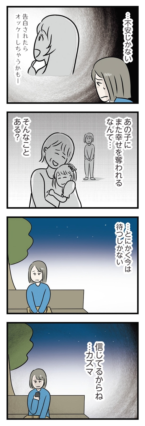 前回、まりあのSNSを見て不安になったエリは、居ても立っても居られなくなりカズマの家に向かった。一方、カズマはまりあを送り届けて帰宅しようとしたが、まりあに呼び止められてしまい…。
