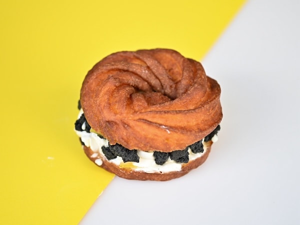 同じく表参道店限定の「レモンクッキーアンドクリーム(フレンチクルーラー)」は、軽やかなフレンチクルーラー生地にバニラクリーム、自家製クランチクッキー、レモンジャムをサンド。爽やかなレモンの香りが春らしさを引き立てる。