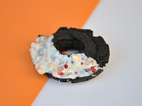 表参道店限定の「オレンジ×ピンクペッパー(オールドファッション)」は、爽やかなオレンジの香りに、ピンクペッパーのほのかなスパイス感を加えている。甘さの中にきゅっとした柑橘の酸味と、ふわりと広がる華やかな刺激が重なり合う。果実の瑞々しさと軽やかなアクセントを楽しめる、大人のためのドーナツとなっている。