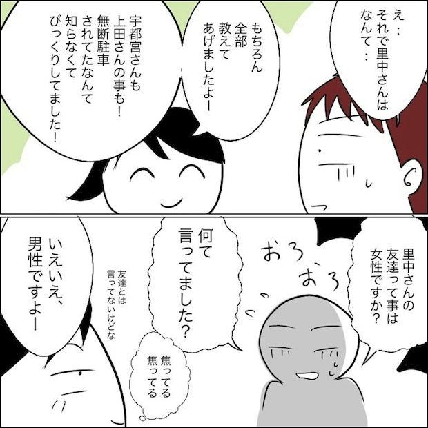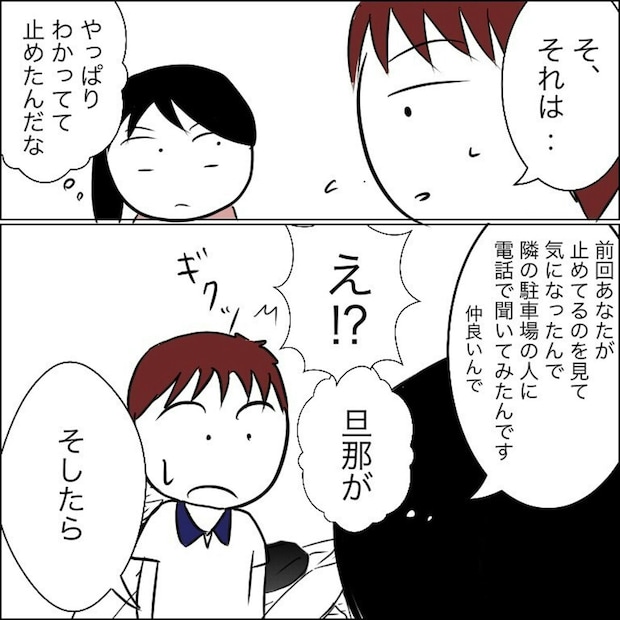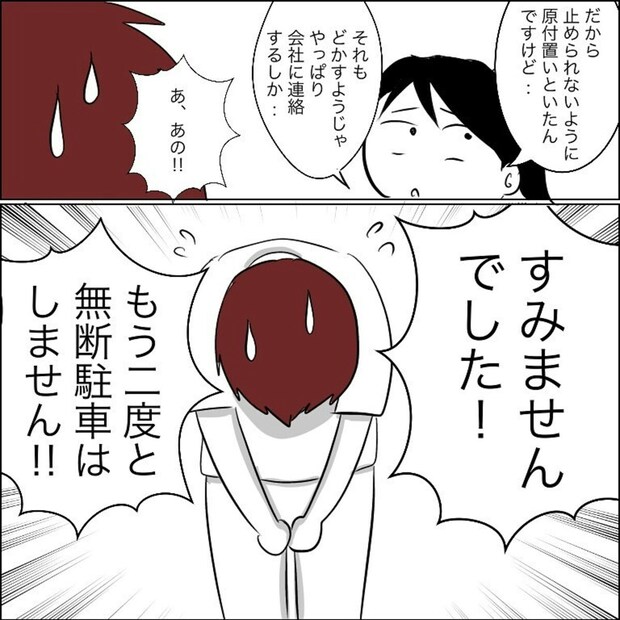 Aiさんの話に怖気づき、ついに謝罪したマッサージ店の店員。スカッとした矢先、隣人・宇都宮さんが登場しました。勝手に隣の駐車場を使うように言ったであろう宇都宮さんは、悪びれる様子がまったく見られません…。