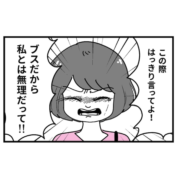 容姿が原因で光一が離れてしまうのではないかと、ずっと不安を抱えていた優菜に「外見じゃなく性格が好き」「整形で顔を変える必要はない」と言ってきたのは光一本人です。裏切って美人と浮気するくらいならはっきり「ブスだから無理」と言ってほしい優菜。すると光一は「めんどくさ」と冷徹な言葉を口にします。
