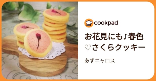 桜餡と桜パウダーを使った、春らしいクッキー。中央にトッピングした桜の塩漬けのおかげで、キュートな印象に仕上がります。
