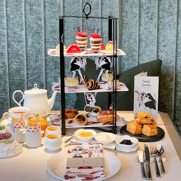 2025年の夏に開業1周年を迎えたフォーシーズンズホテル大阪。その記念プロモーションの一環として「Josie’s Jardin(ジョシーズ・ジャルダン)Afternoon Tea by DAICHI MIURA」を開催しています。アフタヌーンティーのメニューには、Josieのモチーフがちりばめられ、独特の世界観を演出。ロシアやフランスにイタリアなど、三浦さんが世界を旅して得たアイディアを詰め込んだのだそう。