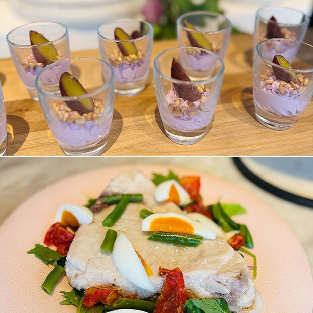 「カジキマグロのニソワーズ風」は、フランスの南部の都市ニース風の魚料理。バーニャカウダーソースをかけてきたのですが、ニンニクが強めでクセになる味わいです。ゆで卵の半熟加減とドライトマトも、カジキマグロと相性抜群。