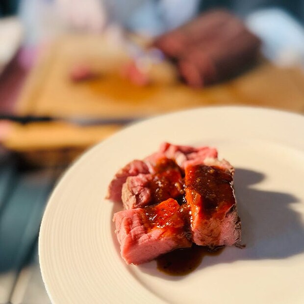 分厚くカットされたお肉が魅力的な「ローストビーフ トリュフの香るマッシュルームソースで」。お肉はしっかり歯応えがあり、ソースからはトリュフの香りがふわっ。肉々しさがあるので、思いっきり肉料理を食べたい!という日におすすめ。