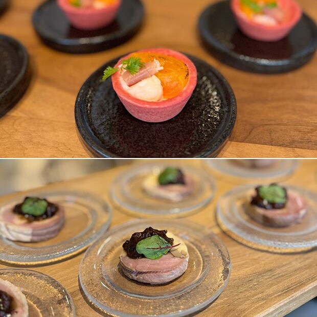 彩が美しくて、サイズ感もかわいらしい「アプリコットと生ハムのタルト」。なめらかなクリーム、塩気のある生ハム、甘酸っぱいアプリコット、全体のバランスがすばらしいです。