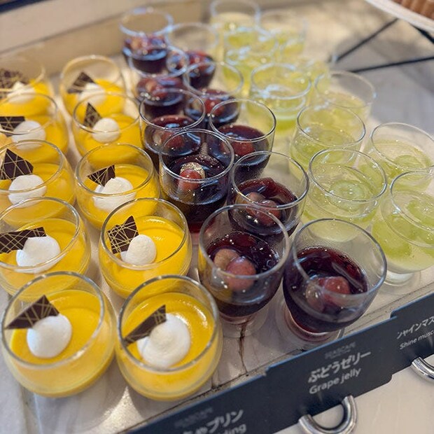 ぶどうがぎっしりと入った「ぶどうゼリー」は、リフレッシュに最適なさっぱりとした味わい。フレッシュなぶどうも同時に楽しめるのが嬉しいです。