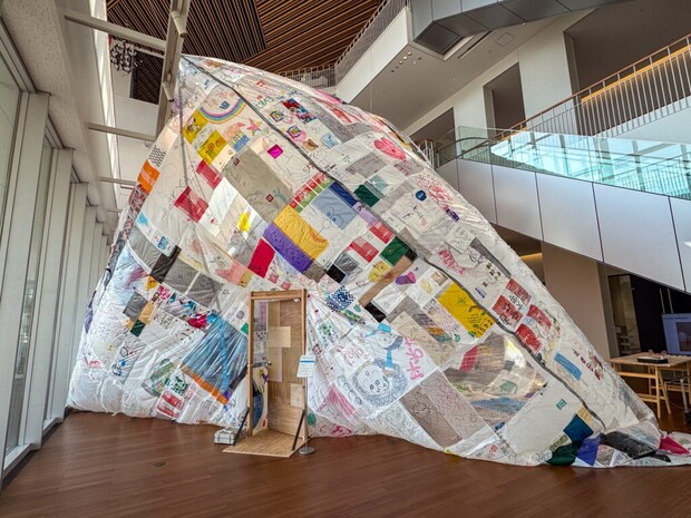 今回の作品は鳥取で新たに制作されたもので、ビニール袋には参加者たちによるイラストも。