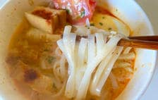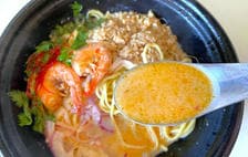 麺はシンガポール定番の米麺で、さっぱりつるっとした口当たりで濃厚なスープとの相性も最高です!