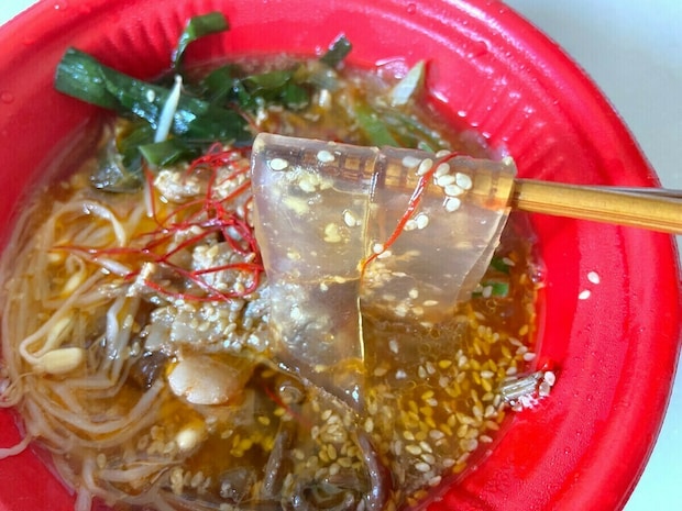 旨辛ユッケジャンスープで食べる極太韓国春雨(タンミョン)