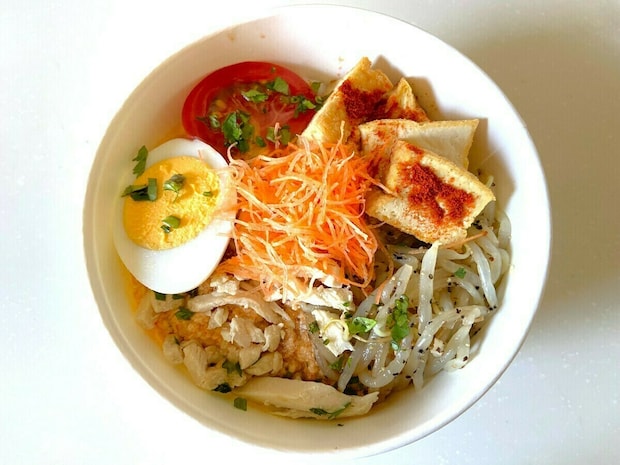 麺はシンガポール定番の米麺で、さっぱりつるっとした口当たりで濃厚なスープとの相性も最高です!