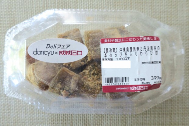 成城石井で販売されている「沖縄産黒糖と丹波黒豆の本わらび粉入りわらび餅」。 沖縄産黒糖、本わらび粉、成城石井自家製の丹波黒豆と、こだわりの素材ばかりで作られた一品です。 まろやかな黒糖の甘みのわらび餅の中には、まるごとの丹波黒豆煮が! 和菓子好きはもちろん、そうでなくてもぜひ試してみていただきたいスイーツをご紹介します。