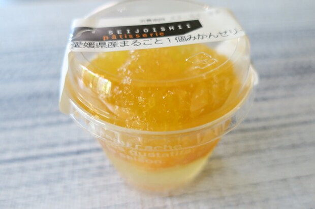 成城石井自家製の、愛媛県産みかんを使用した「まるごと1個みかんゼリー」がテレビで紹介されていたので、気になって購入しました。本当にまるごと1個のみかんが入っていて驚き!そしてそれだけでなく、みかんのさわやかな甘さと酸味をみごとに表現する、さまざまな工夫がこらされていたのでご紹介します。