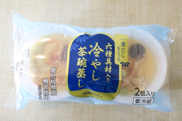 冷やしても温めてもおいしく食べられる「一番だしをとった六種具材入り茶碗蒸し」。