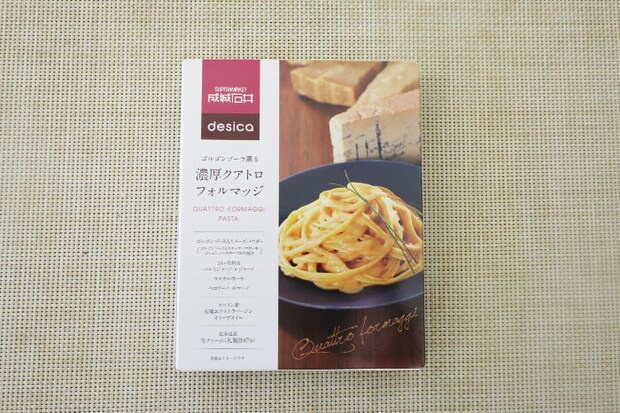 プロの味を手軽に本格的に食べられる、成城石井のレトルトシリーズ「desica」。 コスパも比較的いいので、筆者もカレーやスープはよく利用しています。 パスタソースで一番人気なのは、こちらの「濃厚クアトロフォルマッジ」。 テレビ番組のパスタソースランキングでも上位にランクインした商品です。 はたしてどんな味なのか…?実際に食べてみました!