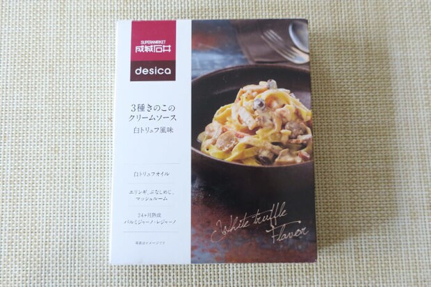 成城石井のオリジナルパスタソースで売り上げNo.1の「3種きのこのクリームソース 白トリュフ風味」は、エリンギ、ぶなしめじ、マッシュルームとベーコン、白トリュフオイルを使用した贅沢なクリームパスタソース。情報番組『めざましテレビ』でも紹介された商品なんですよ♪