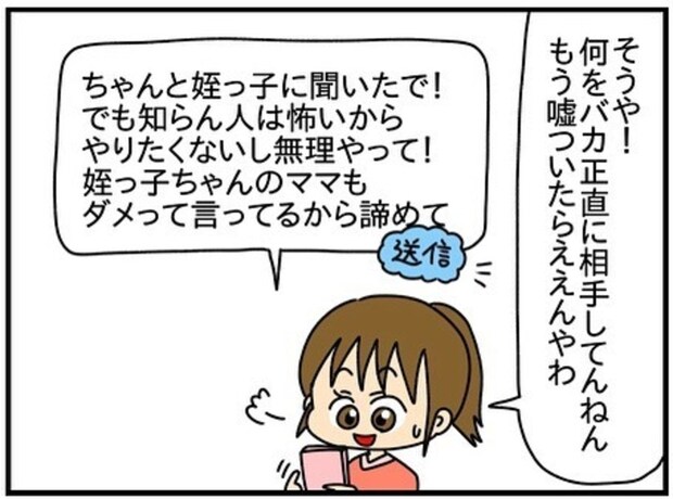 無理だとはっきり断っても「姪っ子の連絡先を教えて」と言い出すチコちゃん。無視もダメ、はっきり断ってもダメ…。追い詰められたきよかさんは、大学時代の友人ナナちゃんに相談することにしました。