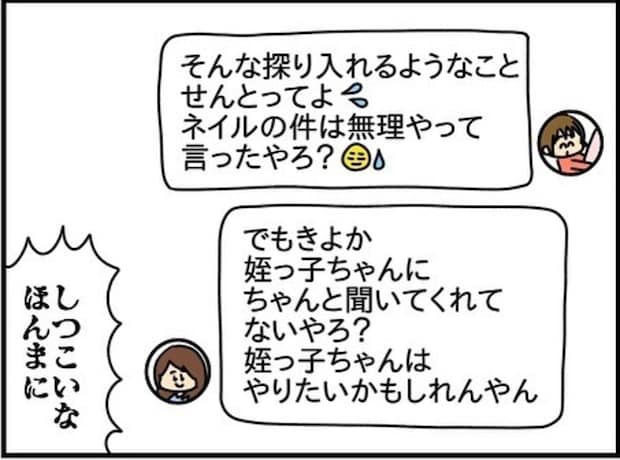 詮索するようなことはしないでほしいと伝えてもチコちゃんは食い下がりません。チコちゃんはどうしてもメイちゃんにネイルをしてもらいたいようです。