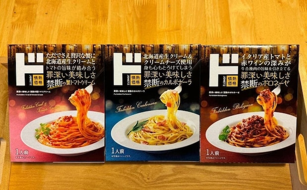 「禁断のパスタソース」シリーズは、自宅で贅沢なランチを楽しむのに最適!厚なボロネーゼ、贅沢な蟹トマトクリーム、クリーミーなカルボナーラの3種はどれも本格的でボリューム満点。