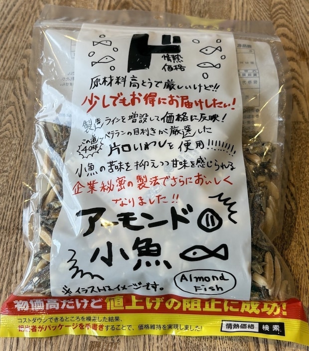 物価高でお菓子の内容量が減る中、ドン・キホーテで見つけた「ド情熱価格 アーモンド小魚」はその重みに驚くほどの「爆盛りおやつ」です。