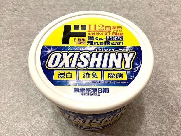 ドンキの「酸素系漂白剤 オキシシャイニー」は、1.8kgの大容量サイズで、高い漂白効果を持つ界面活性剤入り漂白剤です。