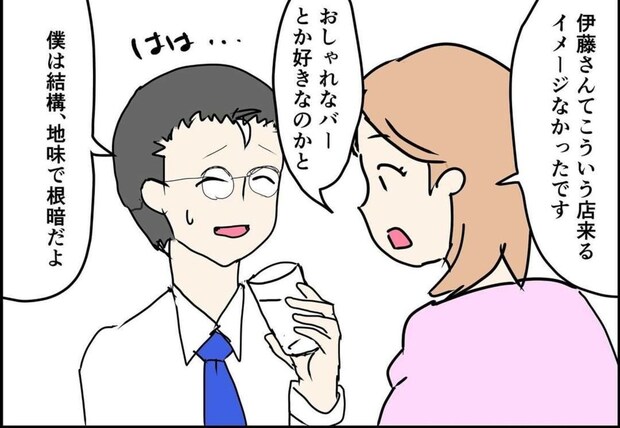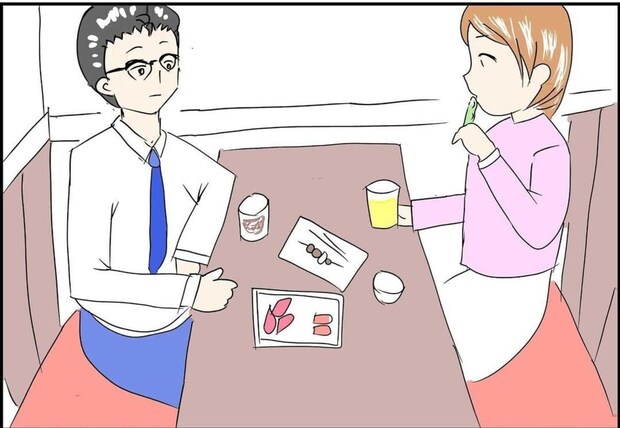 残業を終え、居酒屋で食事をする佳奈さんと邦夫。仕事以外で話すのは初めての2人ですが、どんな雰囲気なのでしょうか。