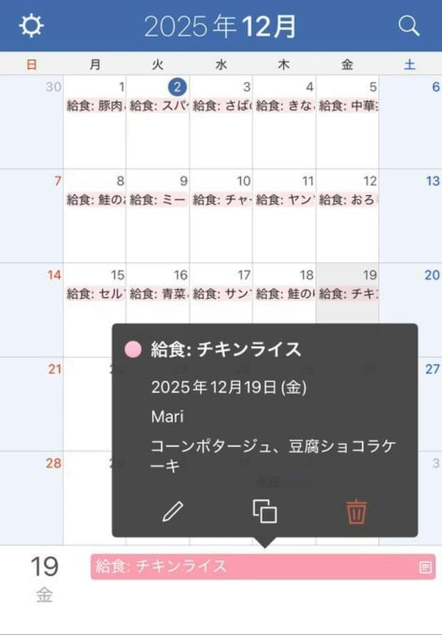 小学校の給食の献立表、写真とってGeminiにカレンダーに入力してと言ったら一発で完璧に1ヶ月分入力してくれた!!!