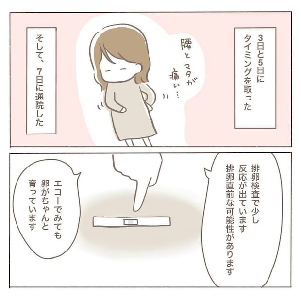 先生の指示通りに進めて病院を受診すると、「排卵はもう目前ですね」とのこと。卵もしっかり育っていると言われ、ひとまず安心できますよね。