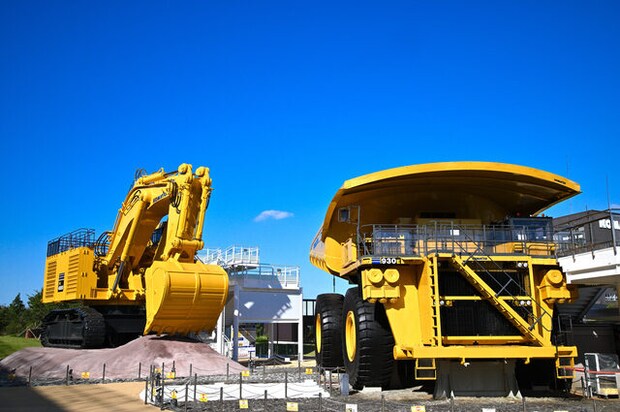 入口では、世界最大級のダンプトラック「930E」と超大型油圧ショベル「PC4000」が迎えてくれ、その迫力に思わず圧倒されます。これらの運転席に乗れる搭乗体験も開催されており、子どもはもちろん大人もワクワクする人気イベントです。