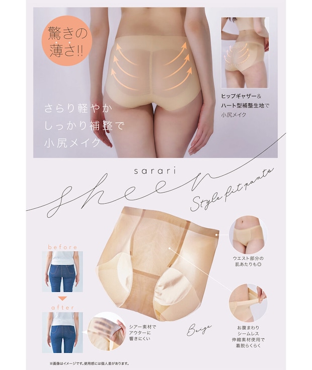 同商品は、驚くほど薄いシアー素材を使用しながら、気になるヒップラインはしっかり整えるスタイルアップインナー。