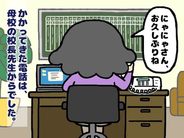 思いがけない母校の校長先生からの電話で、非常勤講師として働くチャンスをもらった主人公。