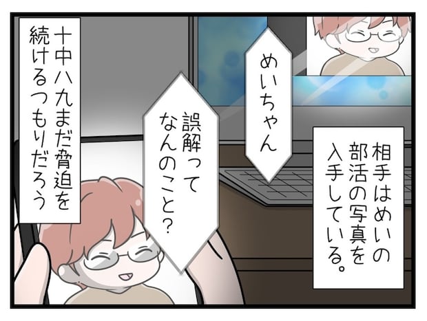 めいさんを脅す相手「かい」とのビデオ通話は、妹に似ている姉が担当。実は、ここまでの流れは家族で事前に話し合って計画したことでした。そのとき長男は、相手が脅しを続けるつもりなら、めいさんがスクショした彼の写真を使おうと考えていました。