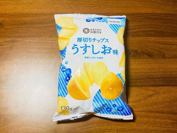 こちらは「厚切りポテトチップスうすしお味」で、130gの大容量パック。