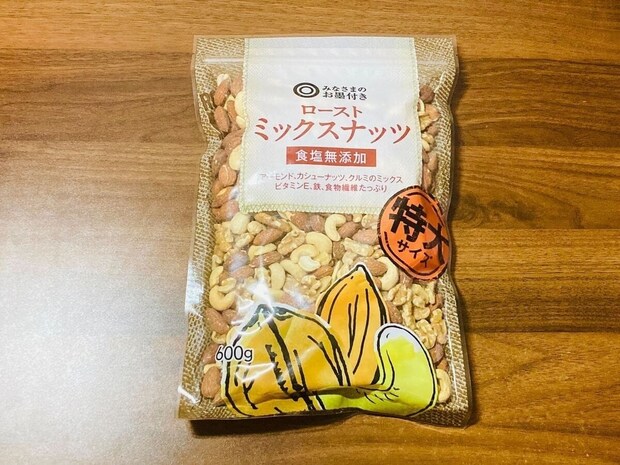 比較的高額になりやすいミックスナッツですが、こちらはなんと600gの大容量で1,620円(税込)です。