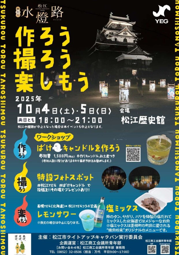 松江YEGは2日間限定で、キャンドルのワークショップや美味しいグルメの出店を行います!